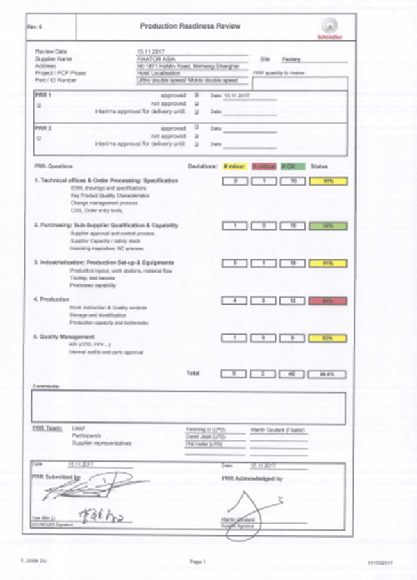 法適達(dá)完成與迅達(dá)電梯初步合作的審核